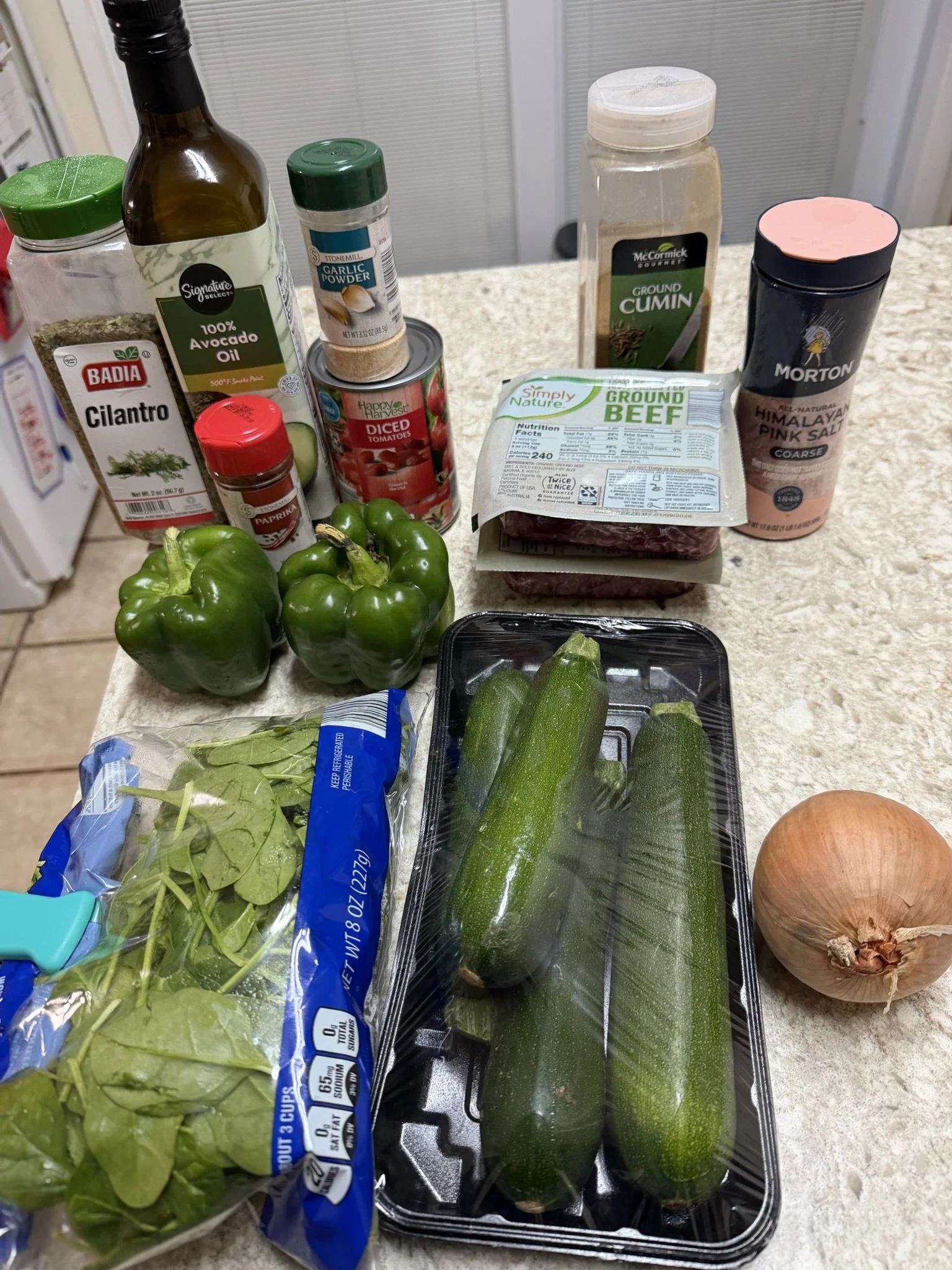 Add the oil and spinach, mixing together with the rest of the ingredients while everything cooks well.