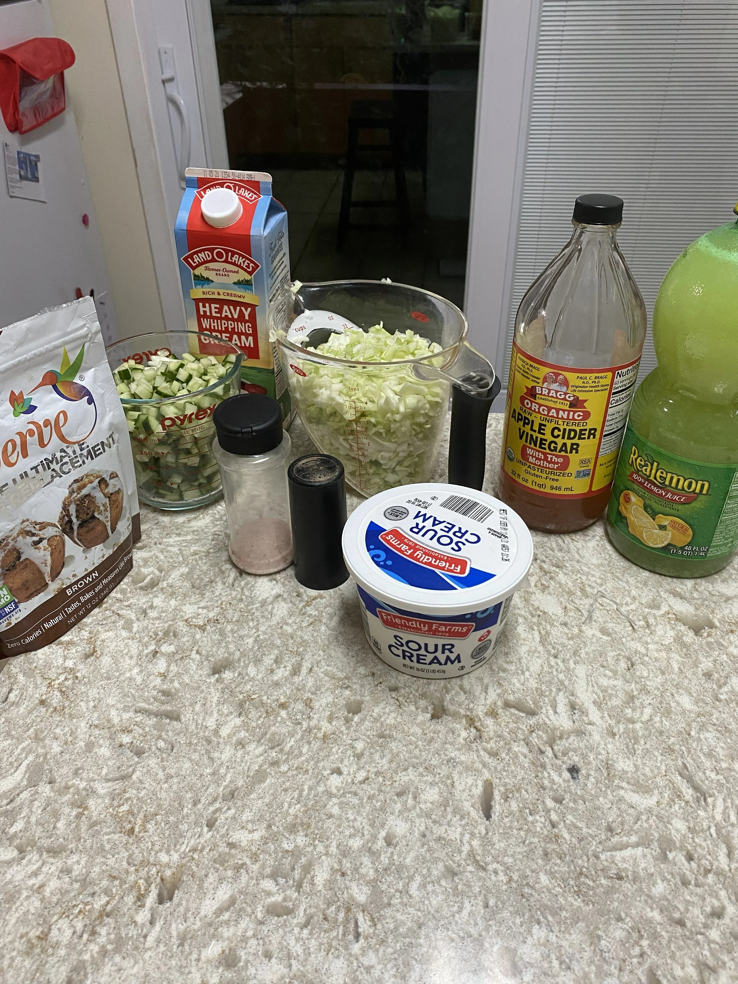 Add the heavy cream, apple cider vinegar, and yellow lemon juice. Mix well.