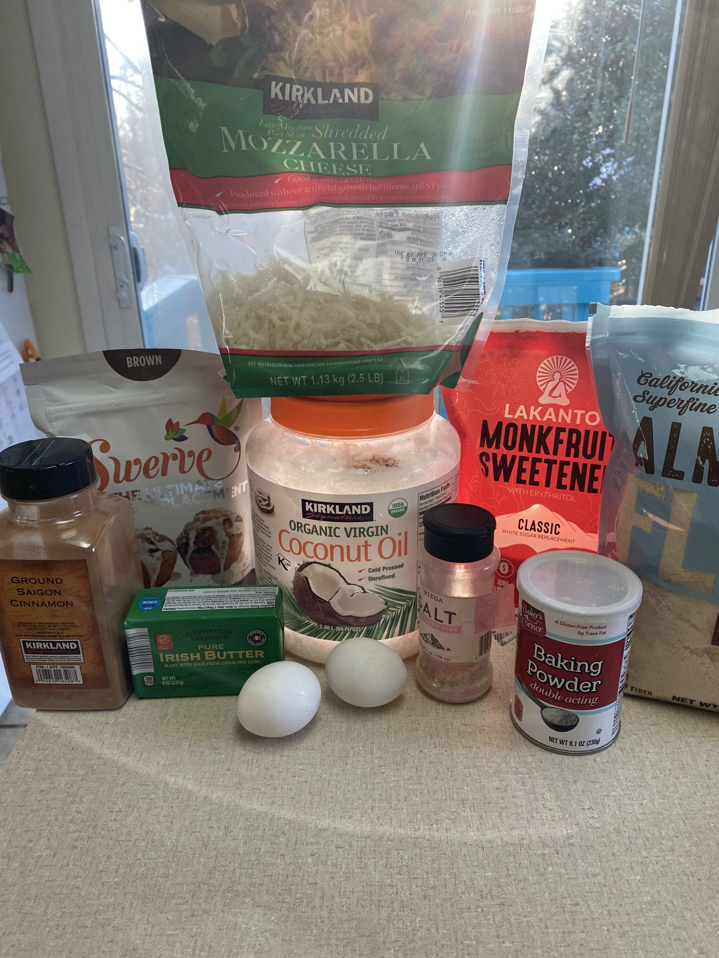 Add the eggs, almond flour, mozzarella cheese, baking powder, pink salt, and cinnamon. Stir until a dough forms.